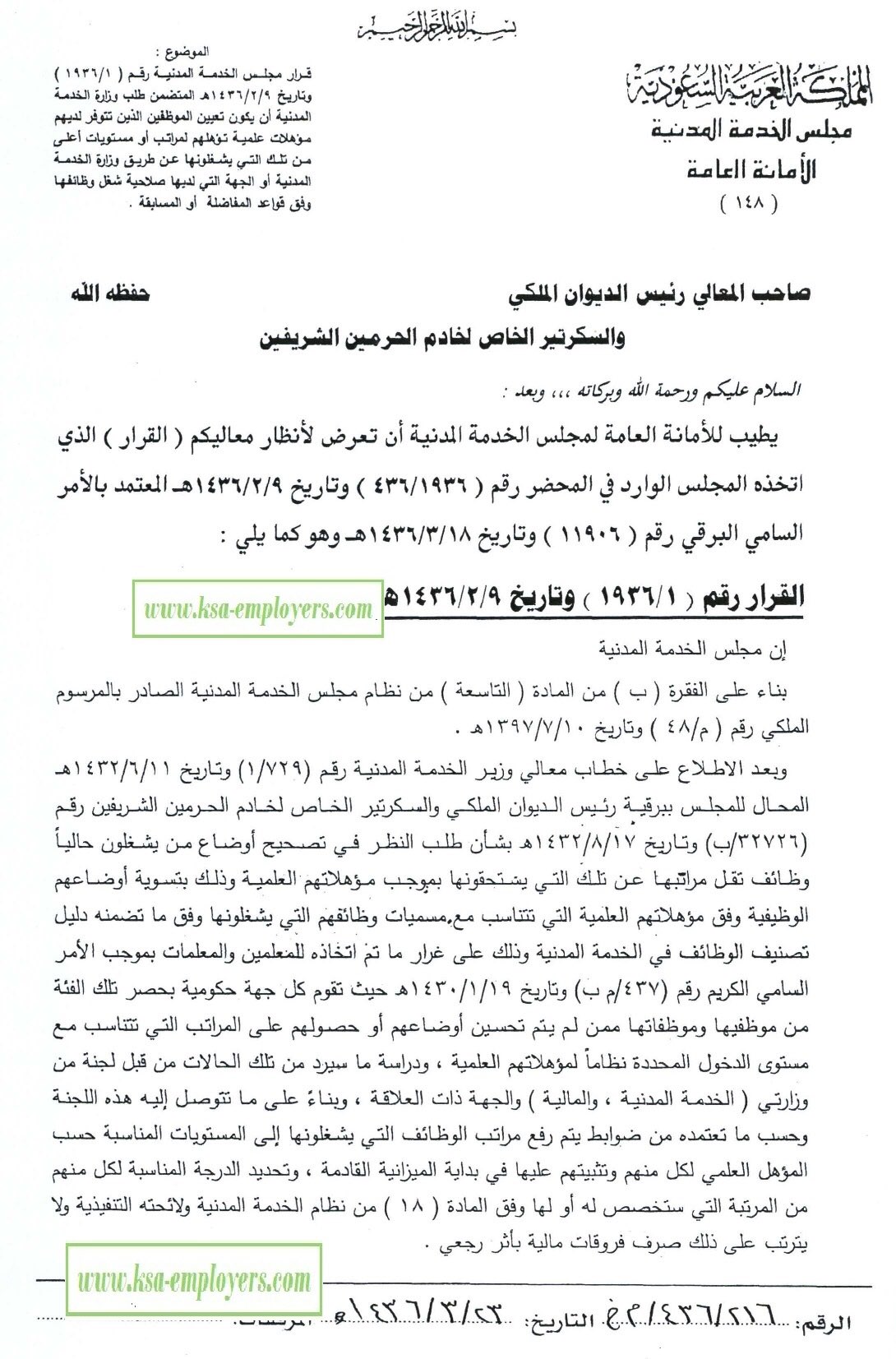 قــqararــرار Na Twitteru Ksa Emp قرار مجلس الخدمة المدنية رقم 1936 1 بخصوص تحسين أوضاع الموظفين الحاصلين على مؤهلات أعلى من مراتبهم الحالية
